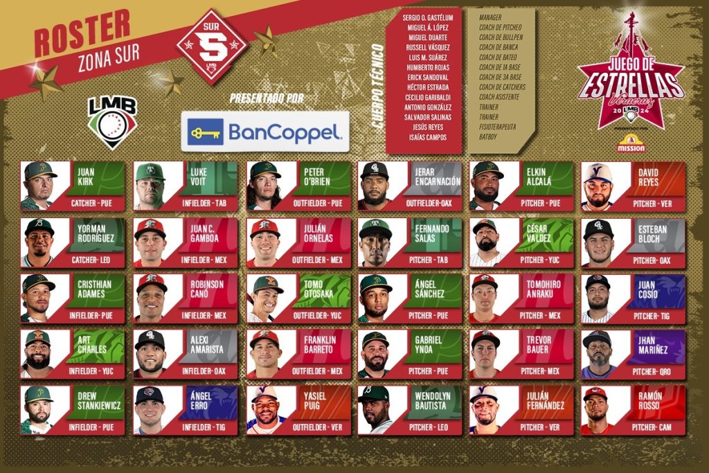 A continuación, el roster completo de la Zona Sur para el Juego de Estrellas LMB 2024: