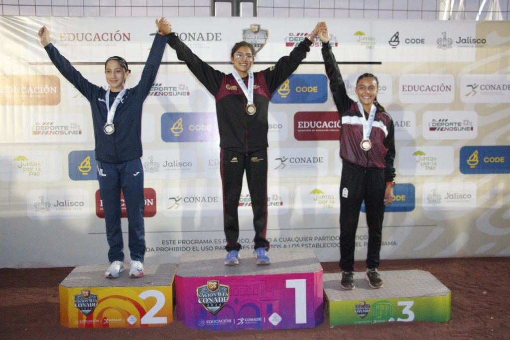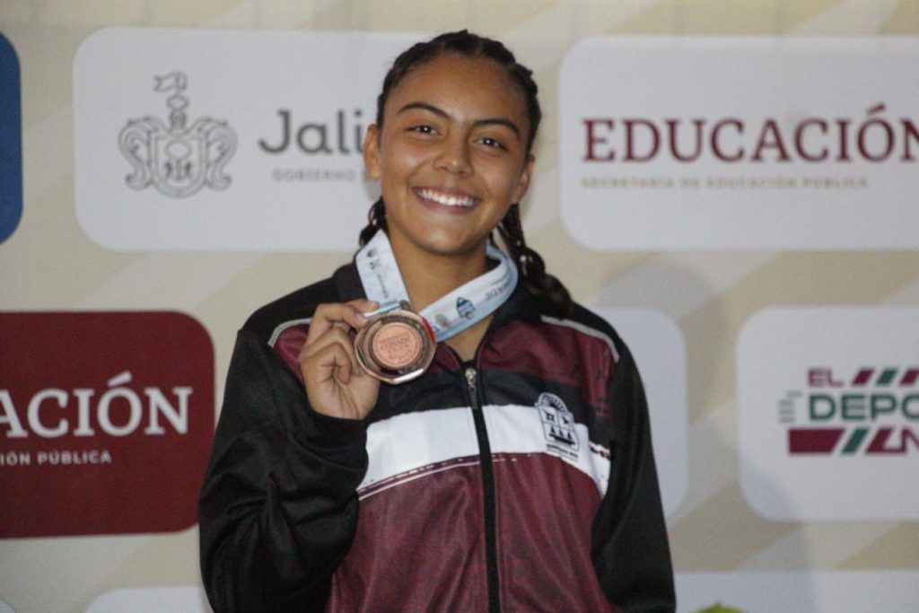 Posteriormente, tocó el turno a la cancunense Alison Paz León, quien se colgó la medalla de bronce en la prueba de los 300 metros con vallas en la categoría Sub-16 Femenil, cronometrando 47.67 segundos; el oro fue Dana Sofía Peña, de Veracruz y la plata se lo quedó María Perales de Nuevo León.