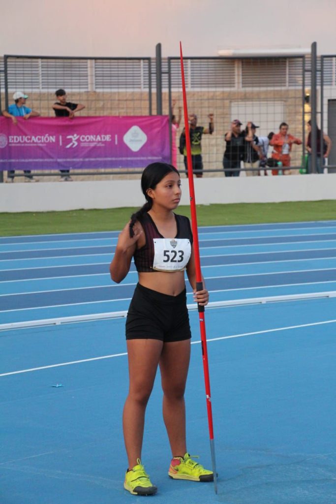 La segunda presea de bronce y tercera medalla en la jornada para el equipo quintanarroense, llegó por conducto de Leslie Esmeralda Solís Vitorin, quien se quedó con el tercer puesto en la prueba de lanzamiento de jabalina femenil de la categoría Sub-16, dejando una marca de 34.22 metros, por detrás de Ximena González y Abigail Serrano, ambas del estado de Nuevo León.